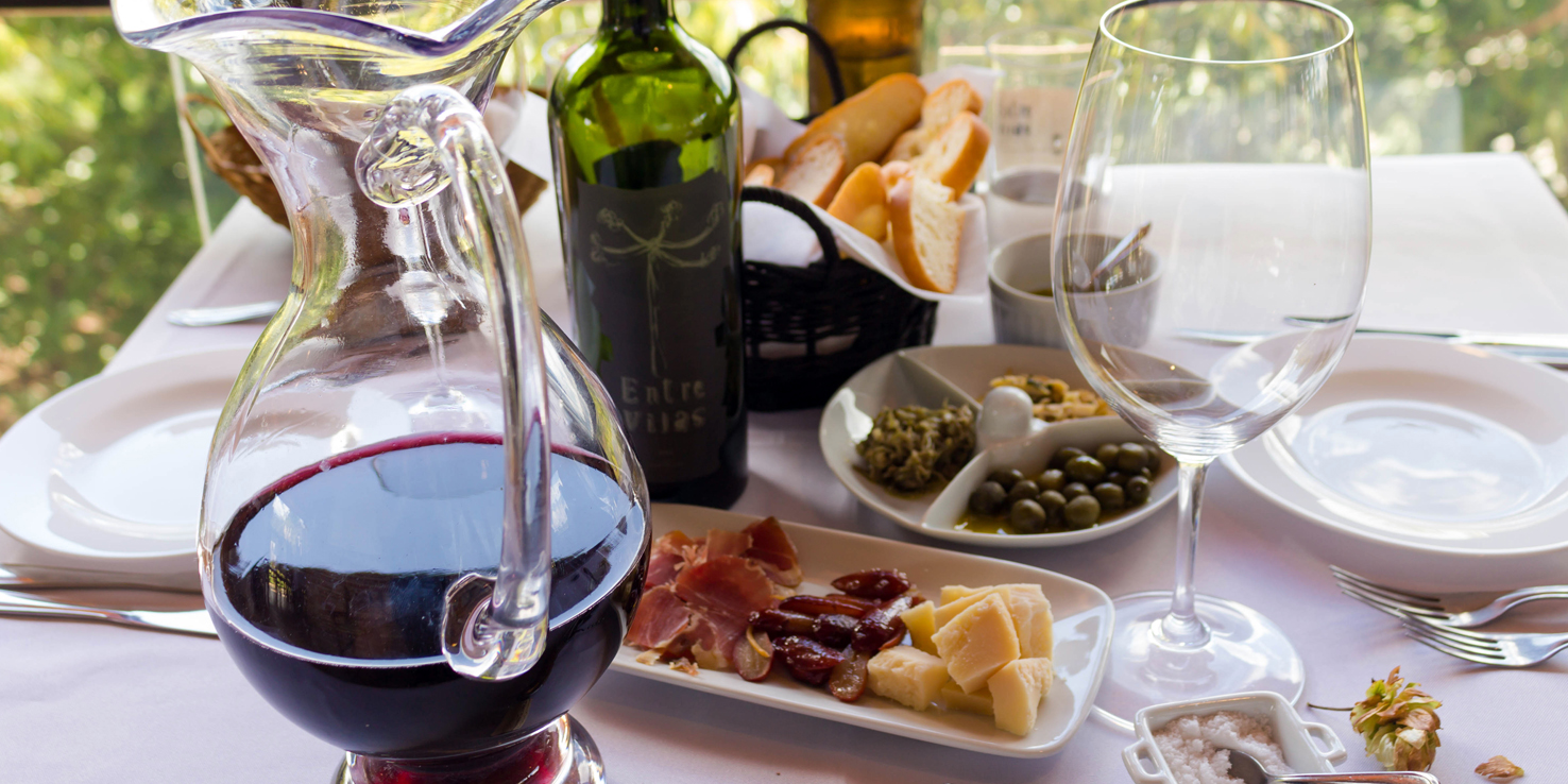 Vinho natural produzido no Entre Vilas, queijos e embutidos artesanais de produtores locais, azeite feito na casa e uma tremenda vista para o campo: que dia